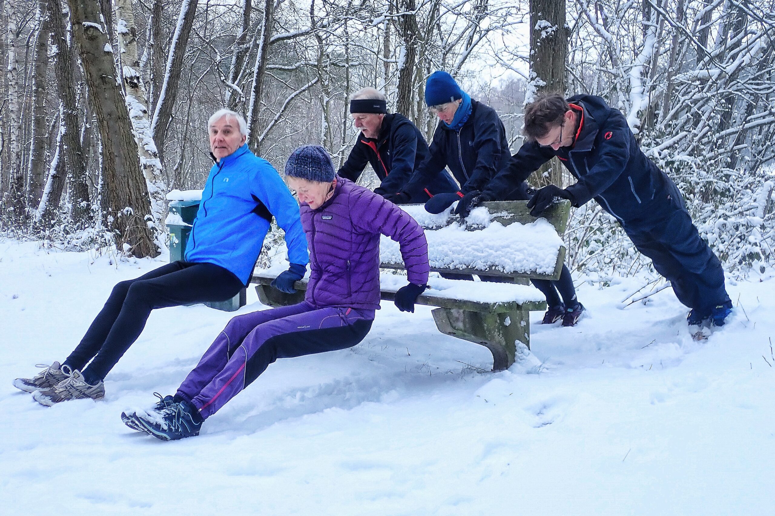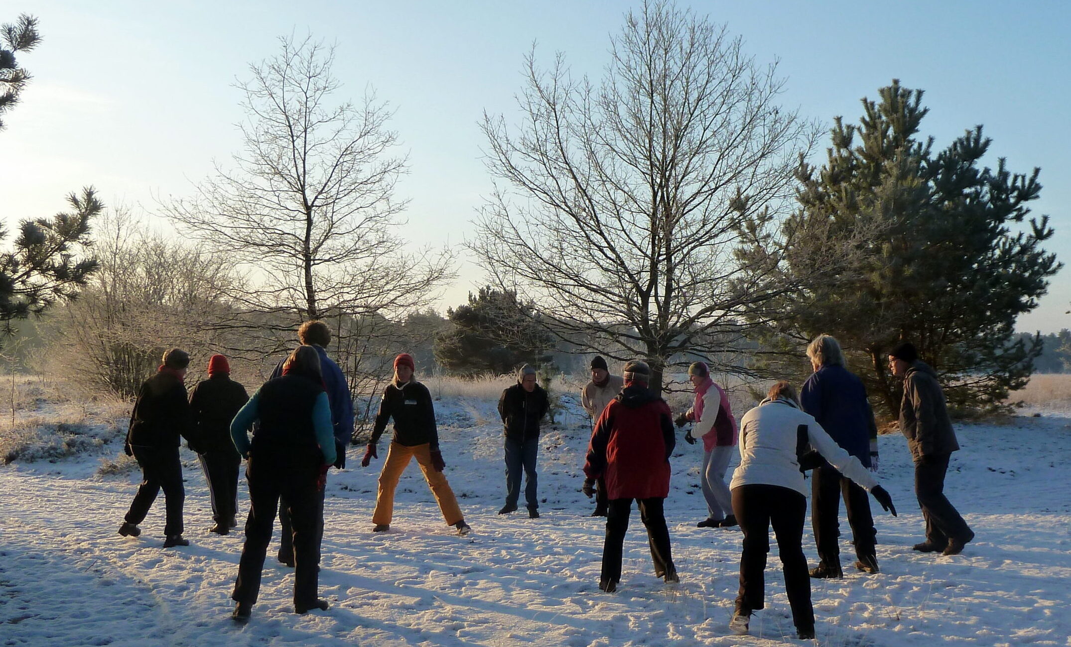 De groep van Bianca op de Gorsselse hei in de sneeuw